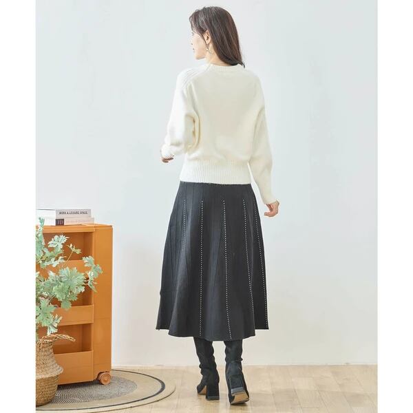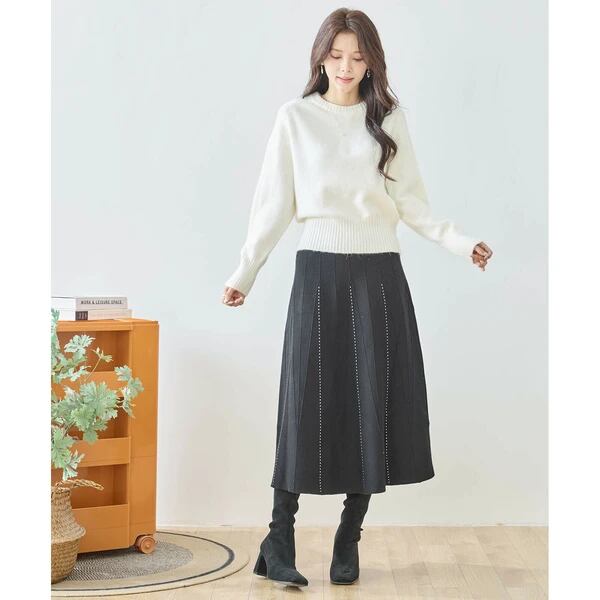 シルエットを美しく見せてくれる、ステッチ入りデザインスカートです。