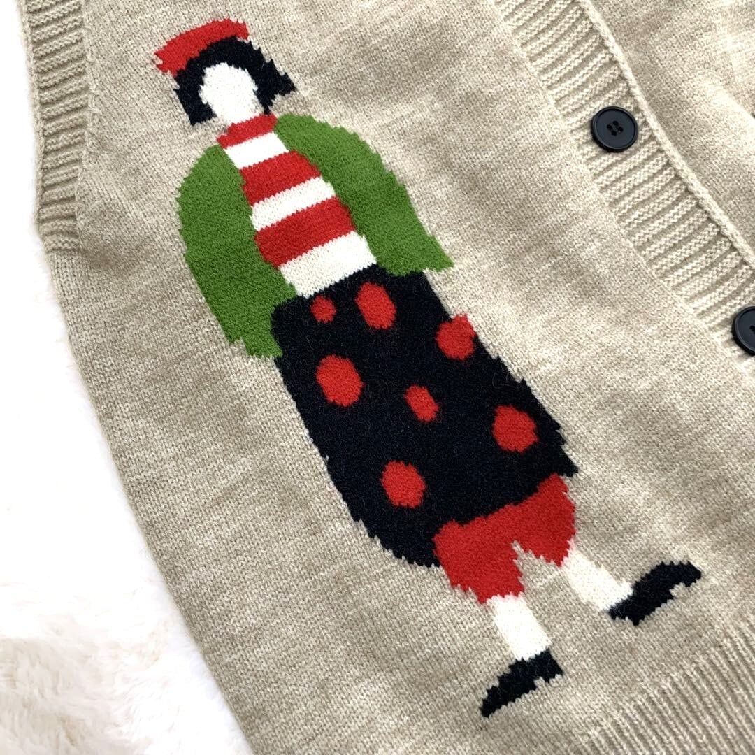 ✨新品未使用タグ付き✨ アートガールモチーフ ニットベスト M〜L ベージュ 個性派デザイン