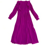 華やかなパープルカラーとロング丈で、特別な日やフォーマルシーンにもぴったり。