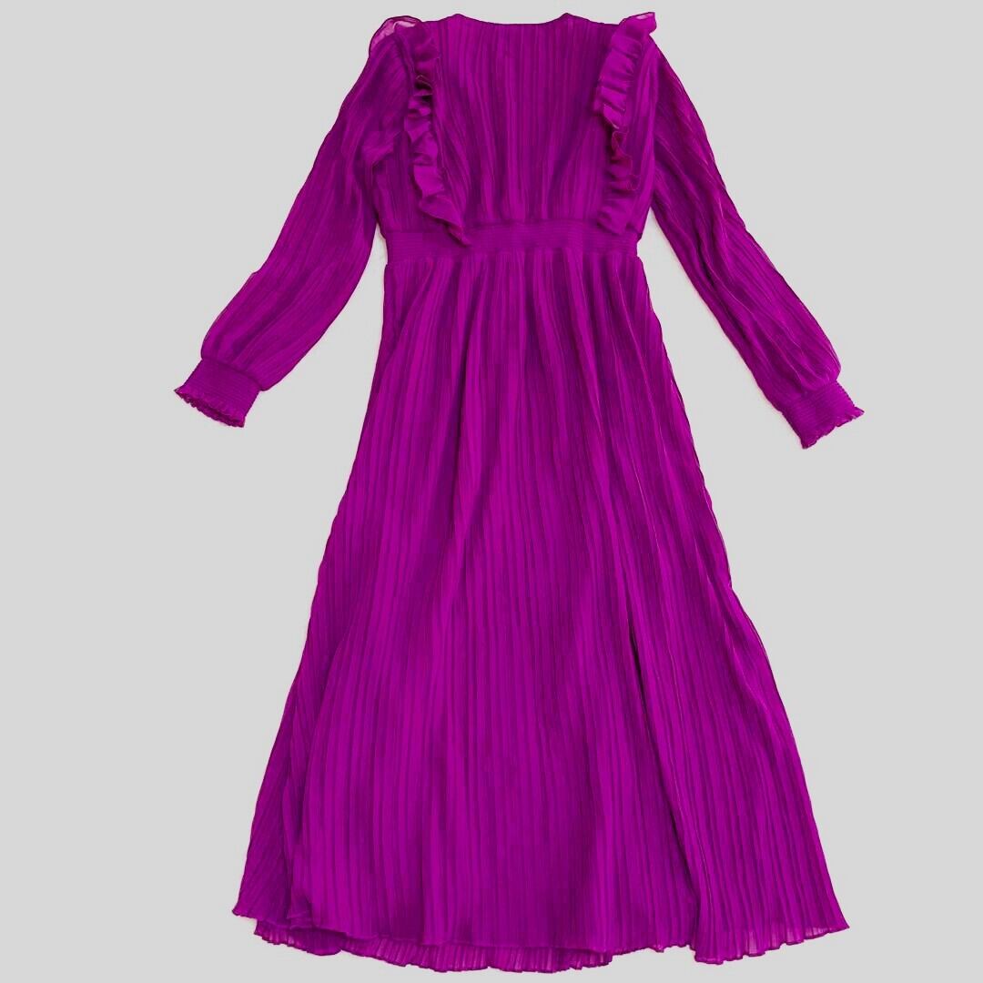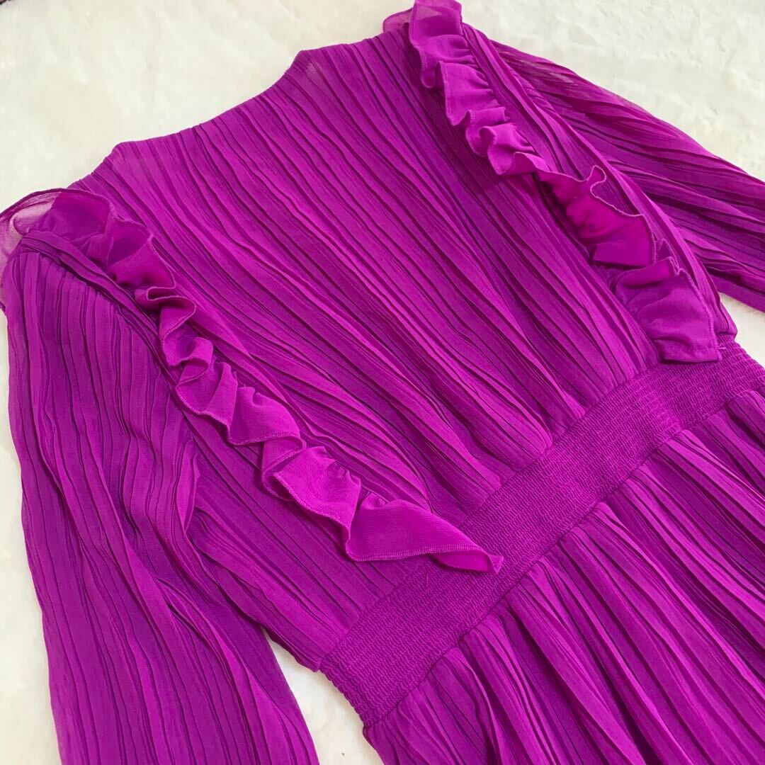 ZARA ザラ シフォン プリーツワンピース L 大きめ ゆったり 紫 パープル
