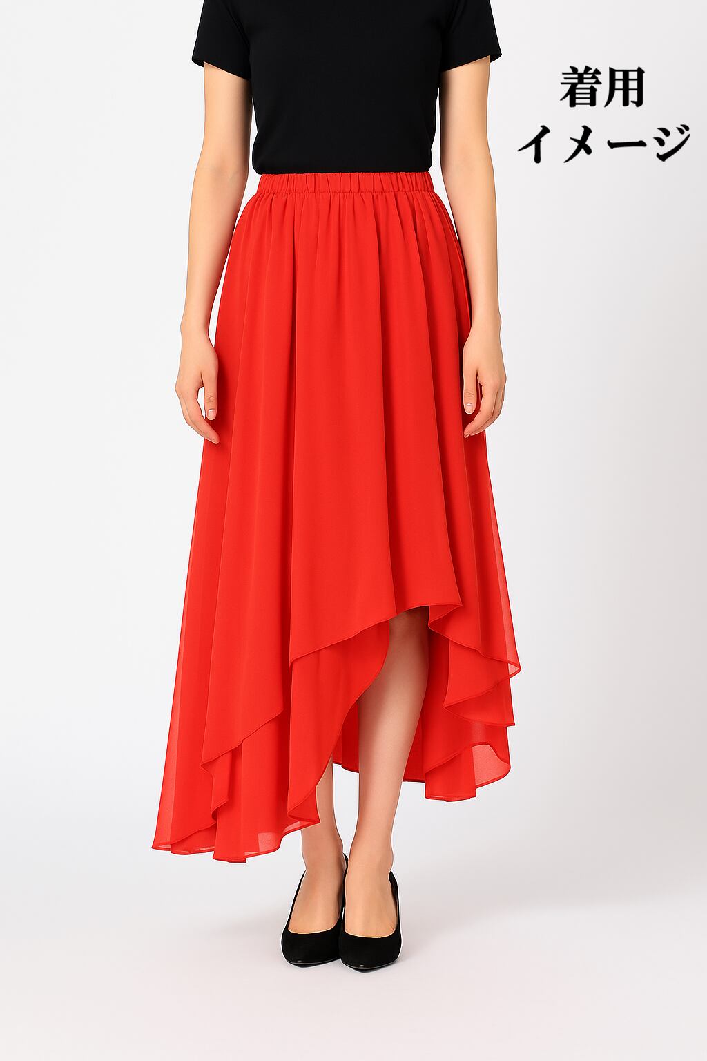 鮮やかレッドのアシンメトリースカートです。