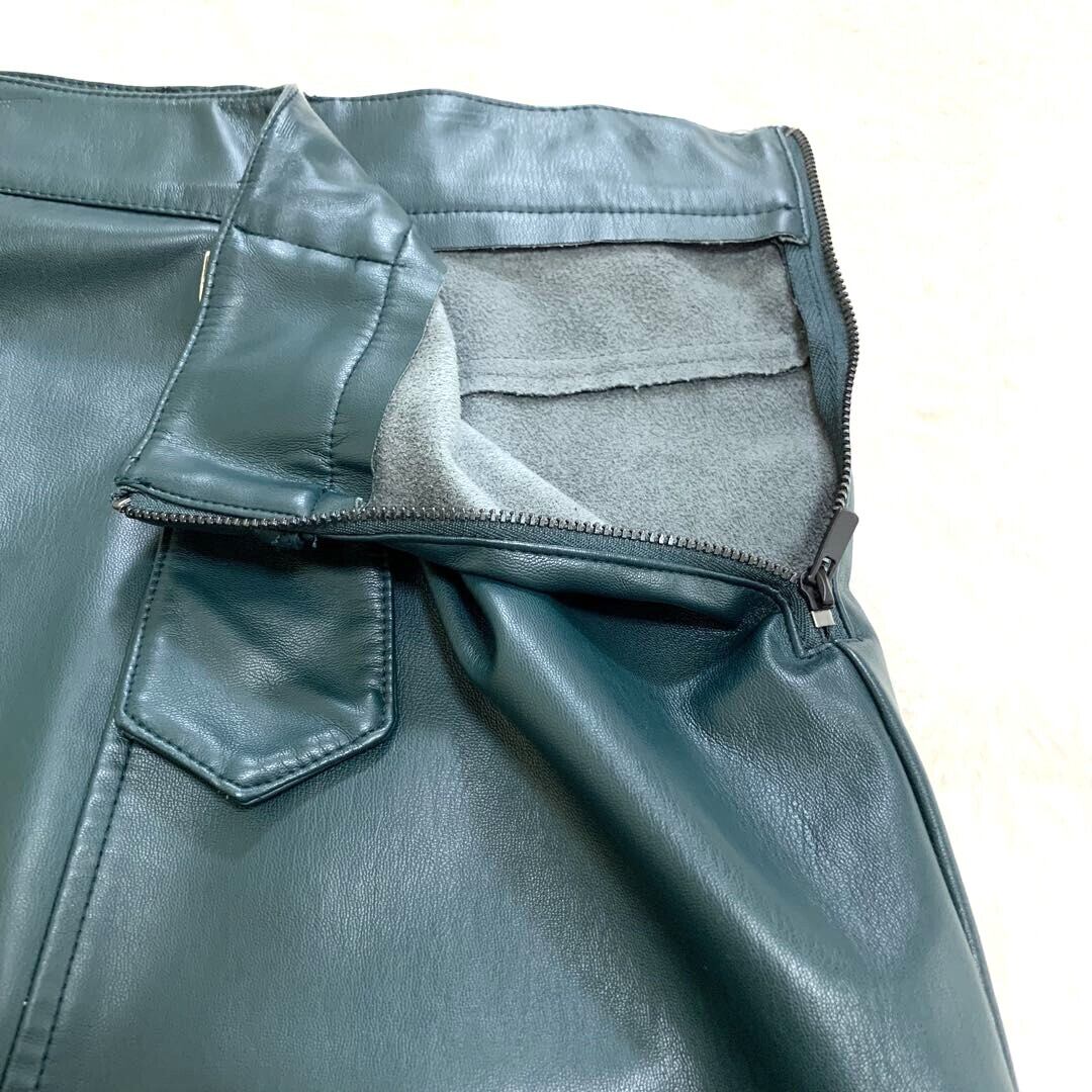 ZARA フェイクレザー タイトスカート 深緑 Dカンベルト付き Sサイズ