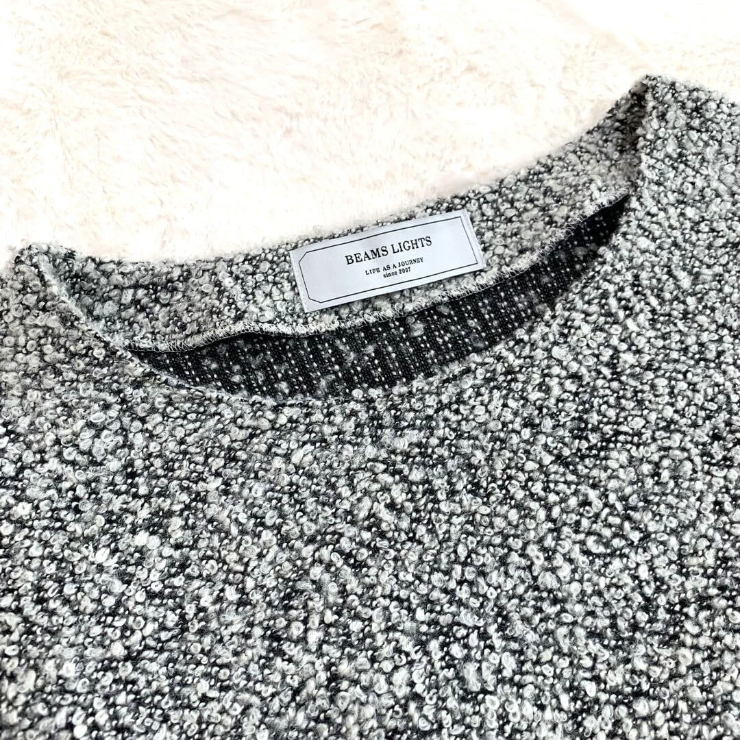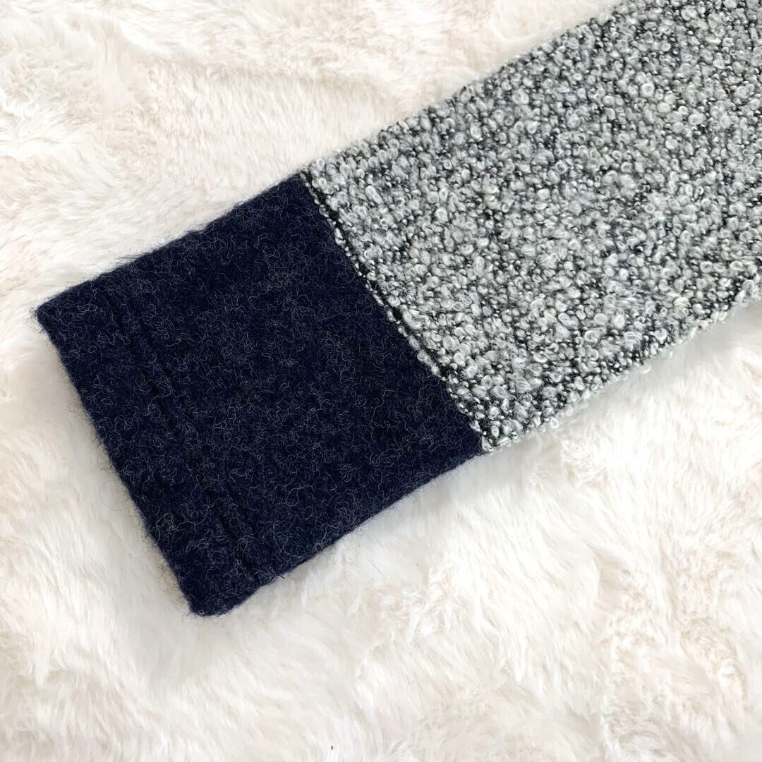 ✨BEAMS LIGHTS✨ ブークレ配色切替 ワンピース L相当 グレー×ネイビー 大人可愛い